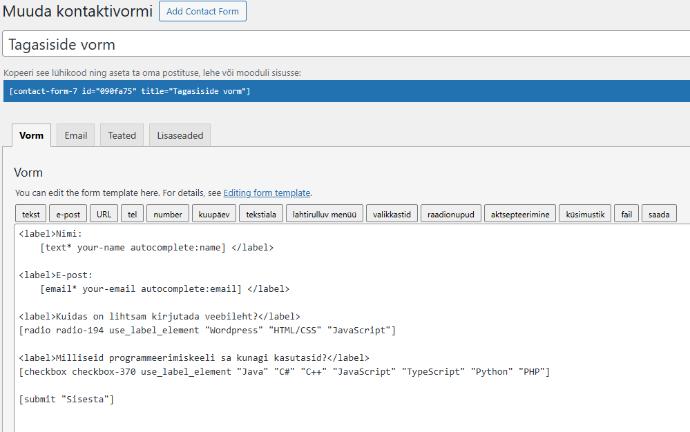 Feedback To create a feedback form we use the Plugin Contact Form 7. Changes that were made……. Name: Email: How is it easier to write a website? WordpressHTML/CSSJavaScript What programming languages have you ever used? JavaC#C++JavaScriptTypeScriptPythonPHP Δ