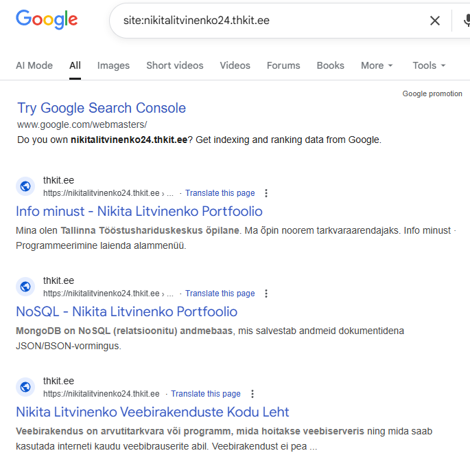 Mis tähendab, et leht on indekseeritud? – otsingumootorid, näiteks Google on lisanud teie lehe info oma andmebaasi.